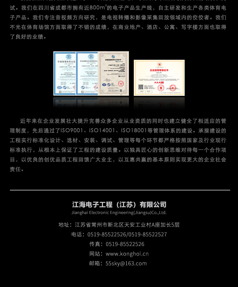© 江海电子工程(江苏)有限公司 版权所有 一专业从事慢动作回放系统-影像采集-电视转播-水下救生-GPS时钟-颁奖升旗。苏ICP备18014716号 苏公网安备 32041102000555号
